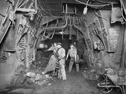 謎の多いタイタニック号処女航海で氷山と衝突し沈没したタイタニック号、この船は石炭焚きの蒸気ボイラで作った蒸気で回すレシプロ機関で 2つの巨大なプロペラを回す構造(第3軸のプロペラは低圧蒸気のタービン駆動)。設計上は十分な防水区画が設けられて 安全な船と宣伝されていたが、最下部には大量の石炭が積み込まれていて自然発火もあったらしい、これが鉄板の強度を落と したとの説もある。 |