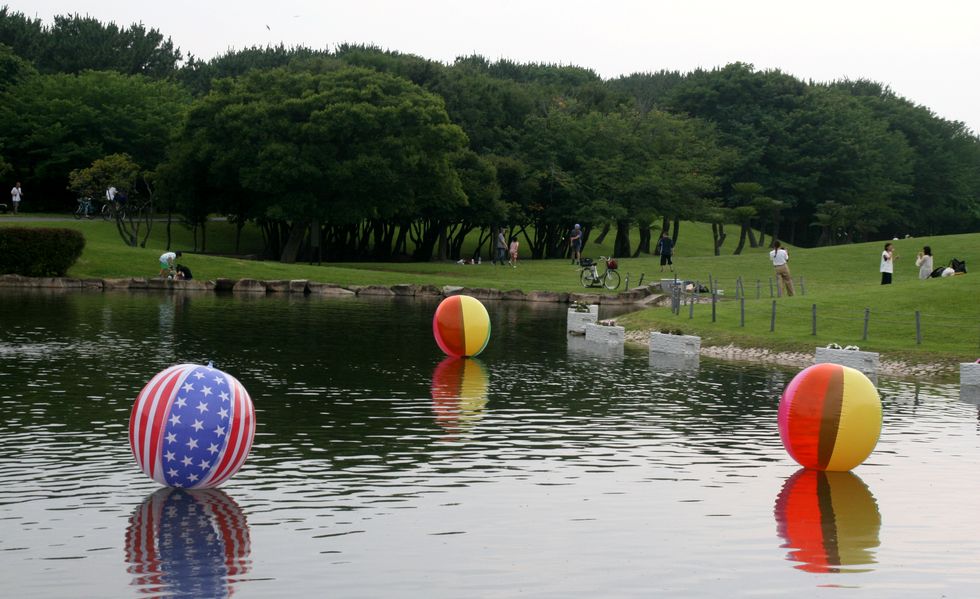 海浜公園は明日のカヌーイベントの準備中明日、公園内で行われるユニバーサルカヌーの体験会の準備が行われていた、リハーサル中との表示あり。 |