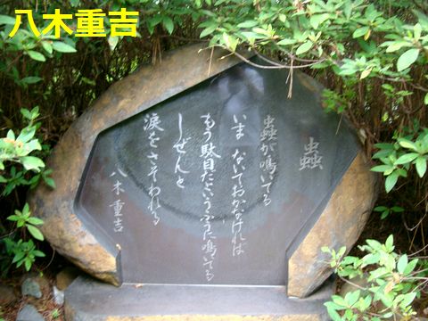 別荘跡地の公園平塚らいてうや八木重吉の歌碑もある高砂緑地という公園。山田耕筰作曲 赤とんぼの碑もあったようだが見逃した。 |