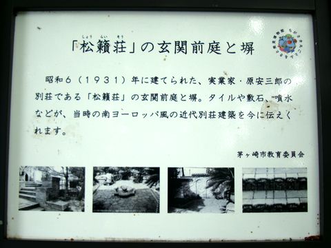 茅ケ崎市美術館もあるもとは原安三郎の別荘「松籟荘」の跡地らしいが痕跡は入口の階段位しか残っていない。 |