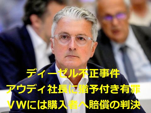欧州のディーゼル排気ガス不正事件に有罪判決アウディの社長には猶予付き有罪判決、VWには購入者への10−15%の賠償をとの判決、クリーンと謳っていた ディーゼルエンジン規制に浄化装置を都合の悪い場面で切ってしまうというインチキが発覚した事件の裁判の結果。 マツダは真面目に技術開発しクリーンディーゼルとなっているが欧州メーカはつるんでインチキをしていた。 |