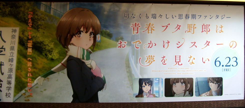 やたらに見かける「青春ブタ野郎・・」の看板このアニメのモデルになっているのは県立七里ヶ浜高校のよう、湘南地区第2位の鎌倉高校でないのがポイントか、 当然ながら江ノ電の七里ヶ浜駅も登場する。 |