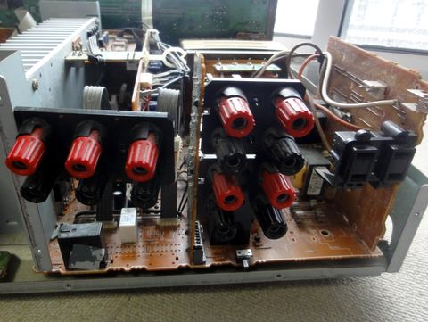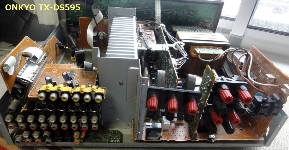 廃棄予定だったTX0DS595をチェックこれまでに判明の不良化箇所、1)PHONO入力動作せず、2)チューナパック故障でAM/FM受信出来ず、 3)Ch-A出力リレー不良(Ch-BはOK)といったところ。6CH分のパワーアンプを持っているので大きく思い、 デジタルアンプ化される前の製品。 |