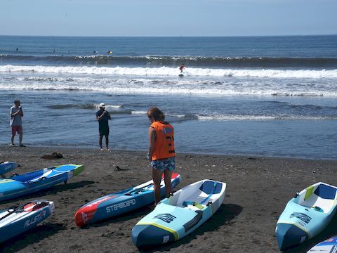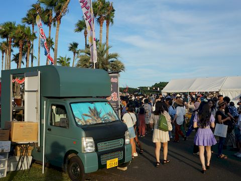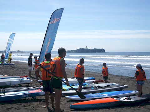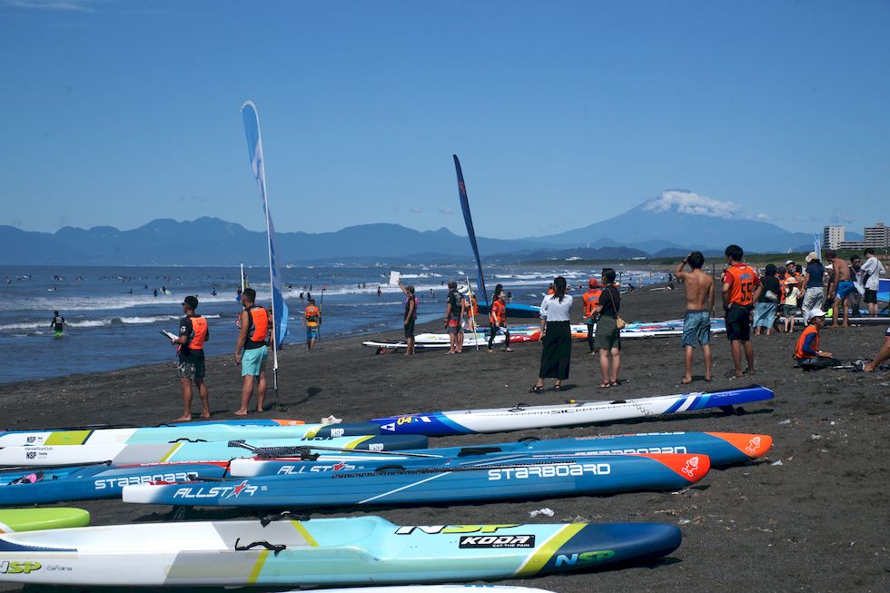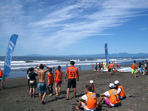 好天に恵まれ人出多数のサーフィン大会通常のサーフィンの他に犬と一緒にサーフィン、SUPの種目がある。朝6時からエントリー受付と早いスタート。 公園の駐車場はほぼ満車、好天で家族連れも多く久々の賑わい。 |