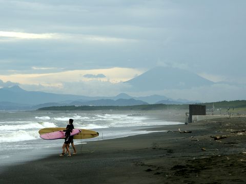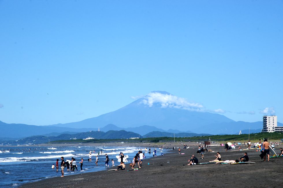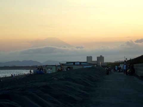 富士山と鵠沼海岸雪が消えた富士山の風景、コロナ終焉で登山者が急増、山小屋の収容人数も減って予約の取れない人達が 弾丸登山してリスク増大も心配されている。 鵠沼海岸の海の家はもう営業しているが平日は閑散としている。 |