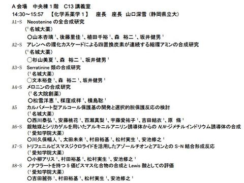 長女もすっかり中堅研究者に今週末開催される日本薬学会・東海支部の講演の座長をすることになっているよう。 支部大会は大学院生の発表デビューと講演の練習の場になっているはず(昔もそうだった)。 私の時代は口頭発表はぶっつけ本番で質疑への準備など何もしないという放任だったが |