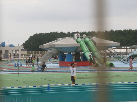 今日から県立公園のプールがオープンコロナ禍で3年間オープンできなかったプールがやっと今日から再開に。朝早くから子供たちの歓声が聞こえる。 下の写真は夕方の散歩時に撮影、地元の人以外はもう帰った人も多く中にいる人は少ない、臨時の自転車もまばらに。 |
