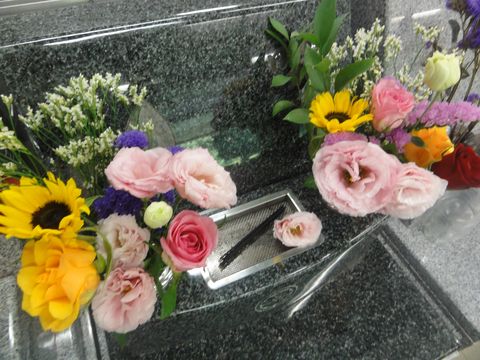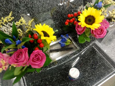 墓参りに花はイオンのポイントで購入(1400円弱)、暑くなりさすがに花は全部だめ。他のお墓も花は非常に少ない。 前回、漂白剤を少し入れたので残った水が腐っていない、と効果確認できた。 |