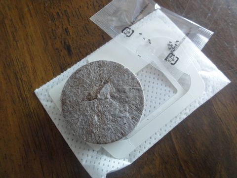 早速タネを蒔いてみた土を水でもどしてタネ(10粒ほど)を蒔いてみた、芽が出るかな? |