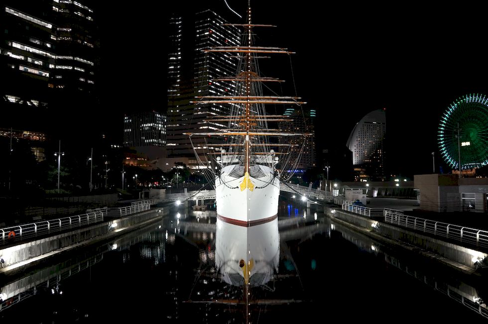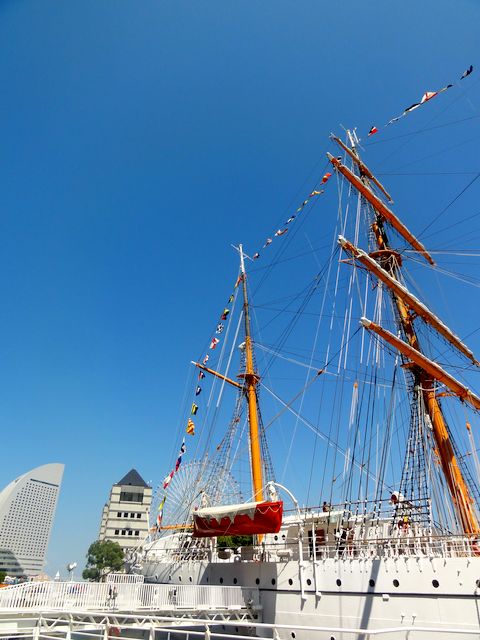 日本丸も水平に戻った?長らく西側へ傾いていたがやっと修復なったよう。 |
