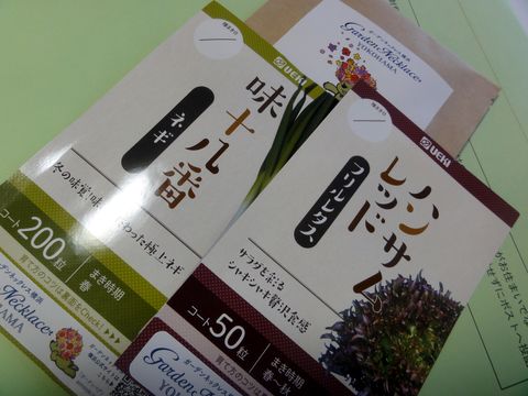 ガーデンネックレスの賞品が届いた応募したことさえスッカリ忘れていたが、小型ノート、野菜の種2種、ドリッパで育てるタネが入っていた。 |