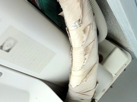 南側エアコンのテープは劣化著しい2010年7月購入・設置から早13年経過だから光劣化もあり仕方ないものだが。 |