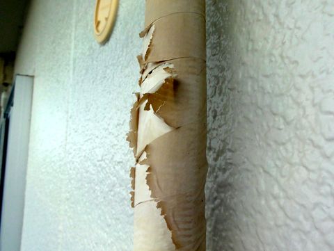 さっそく巻替えを実施午前中に届いた非粘着テープを使い、南側エアコンのドレインのテープを巻替え。 まずは痛んだテープをカッターで切除して下から上へ重ねながらテープを巻いてゆく。 室外機接続部は狭くて大変だったが定石通りに下から上へテープを巻いて端をビニールテープで固定。 最上部はほぼ痛んでないのでそのまま活用。 |