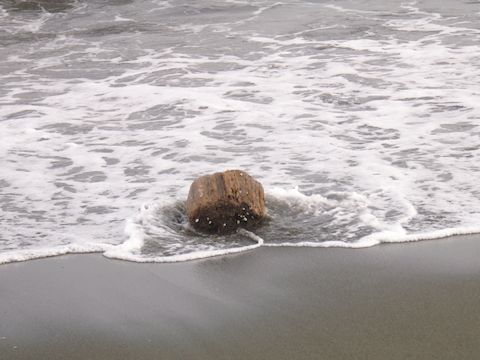 海岸には打ち上げられたもの多数荒れると大きな木も打ち上げられる、丁度この辺は海流が浜に向かっている場所で砂も大量に流れ着く。 茅ヶ崎方面では逆でどんどん海岸の砂がもっていかれている、ダムのせいで川の上流から流れてくる砂が激減し 海岸は痩せるばかり。 |