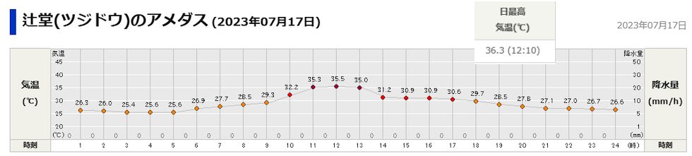 昨日17日はこの夏一番の厚さに東京都心や横浜で35℃越えなどでも辻堂は30℃程度で快適だったのだが昨日は35℃越えの 猛暑日になったので非常に暑かった。 |