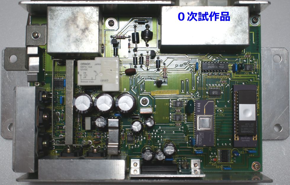 急遽、M社製品を見て製作した0次試作品のコントローラ、制御は結構複雑で車速を見てアシストカーブを 変えたり、エンジン回転数も見てアイドルアップするとか。最後の安全の鍵はモータに付けた電磁クラッチでの 切り離し。