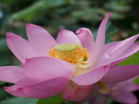 蓮のピークは過ぎている感じまだ蓮はたくさん咲いているがもう花弁が開ききったもののあり見頃のピークは過ぎた感じ。 |