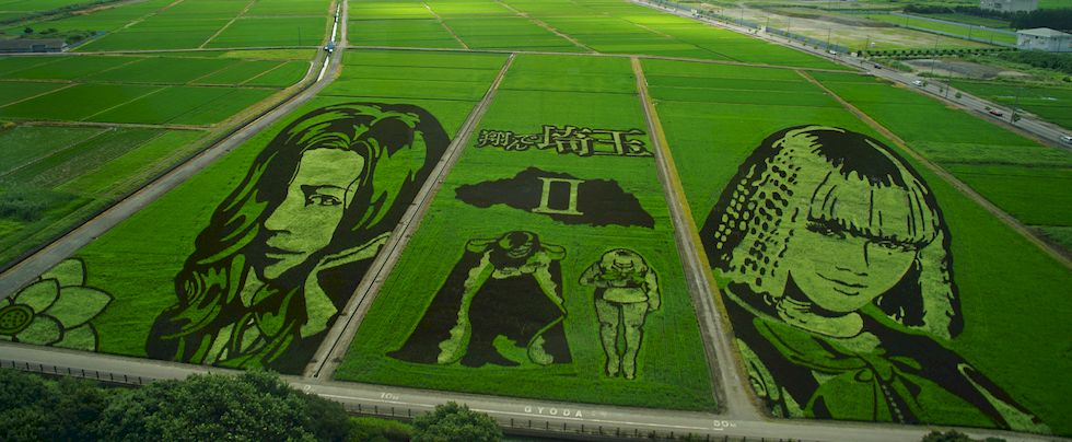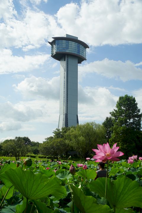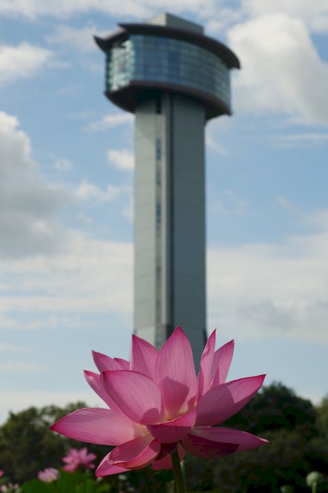 行田・古代蓮の里/田んぼアート朝5時に家を出て5時49分の宇都宮行ラビットで出発、上野で高崎行へ乗り換え8時前には行田駅着。 8時5分のバス(満員)で古代蓮の里へ。直ぐにタワーの最上階から田んぼアートを撮影、窓ガラスの反射防止の アダプタが2カ所にあり並んで順に撮影。 |