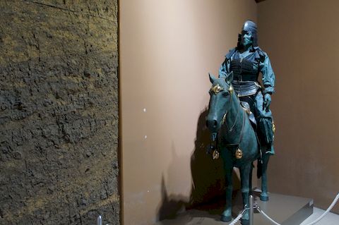 一帯は古墳だらけ石田三成が秀吉に命で水攻めするために作った石田堤の一部も残っている。道路の反対側にある博物館へ、 話題になった金文字のある鉄剣のレプリカが見られた。 |