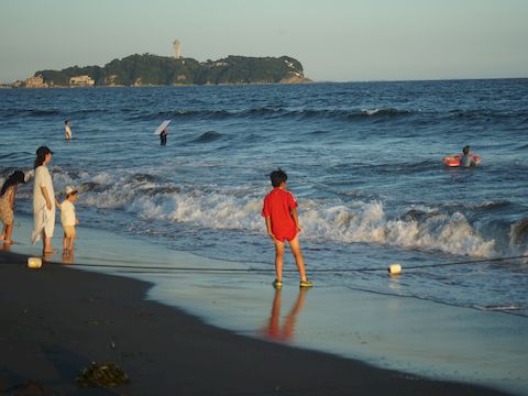 日曜日、海は家族連れがいっぱい夏休みになって初めての日曜日、小さな子供連れの家族が目立つ。 |