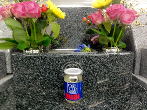 墓参りに、お盆で花は高いお盆時期で花が高価になっている(いつもの事だが)、花はほぼ全滅だが漂白剤添加のおかげで水は 腐らないようになった。 |