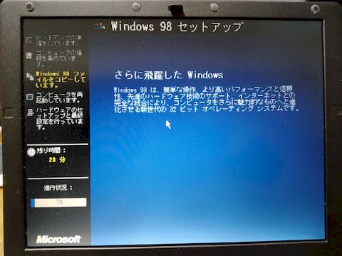 古いノートPCにWINDOWS98SEを入れるUSBドライバを内蔵HDDに入れる手段が無いという矛盾、仕方ないのでHDDを取り出して別のPCで ドライバをHDDへコピーし、元のPCへ戻してやっとUSBドライバが入れられた。その後はUSB経由で USBメモリやUSBフロッピーでコピーできるので楽になったが、ドライバ探しも一苦労。 |