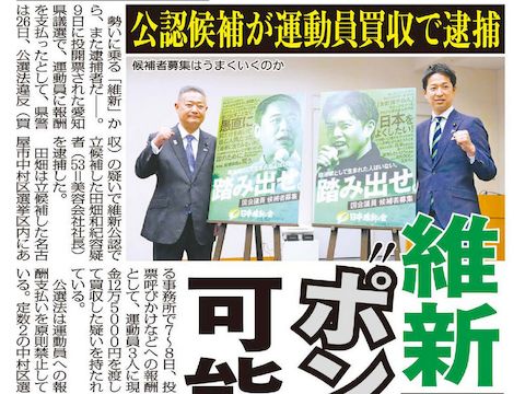 もはやポンコツ・有害政党?になったポンコツ議員の寄せ集めで統一性まったく無し、選挙違反もやり放題の議員が溢れる政党。 |
