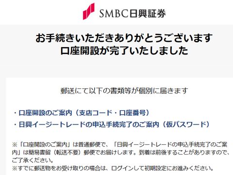 TOB応募の準備が整った野村證券の口座へのログイン情報も確認できたし、SMBC日興証券の口座開設もあとは手続きを するだけ。正式にTOBが履行となったら、野村からSMBCへ株を移動させて、TOB応募して売却する ことになる(手数料は掛からないはず)。 |