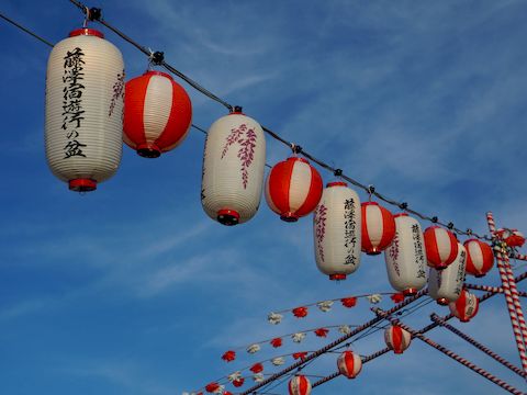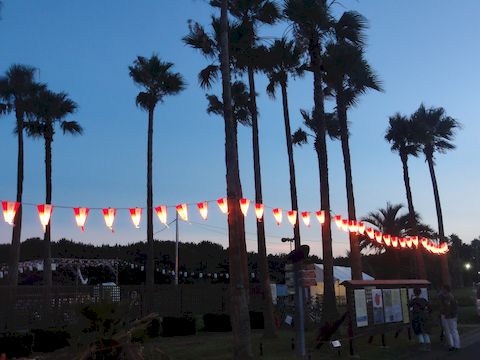 「辻の盆」準備完了明日と明後日開催の久しぶりの辻の盆、準備が終わって提灯も点灯。 |