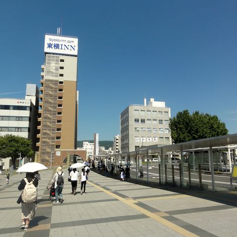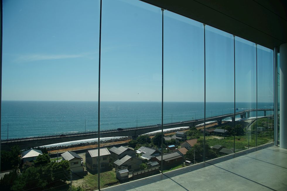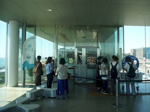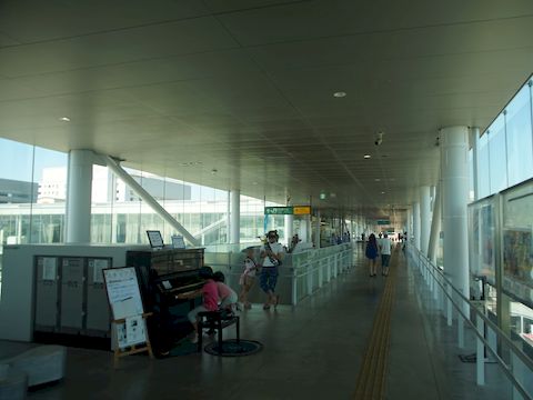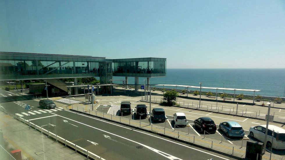 日立駅へ、マンホールカードも貰うユニークなデザインで話題の日立駅へ。跨線橋を発展させ反対側の海が見えるガラス張りのスポット、その 隣には洒落たレストランもある。 |