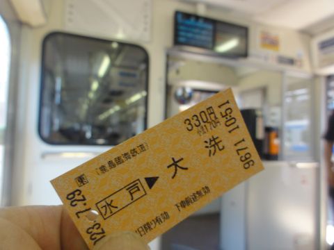 鹿島臨海鉄道で大洗駅へ水戸へ戻り、一旦改札外へ出て鹿島臨海鉄道の切符を買って(SUICAは使えない)乗車し、3つ先の大洗駅へ。 久しぶりに紙の切符を買った。大洗駅は鉄道本社も入居、トイレも綺麗になり左手には観光施設もできた。 アニメの看板があちこちに有ってやたらに目立つ。 |