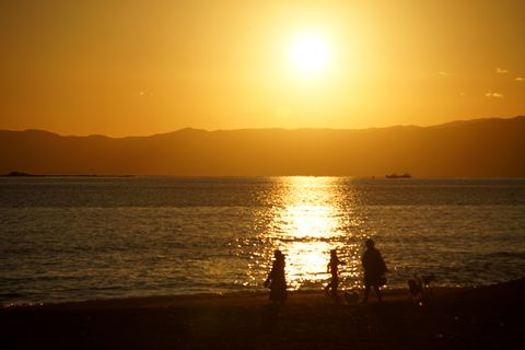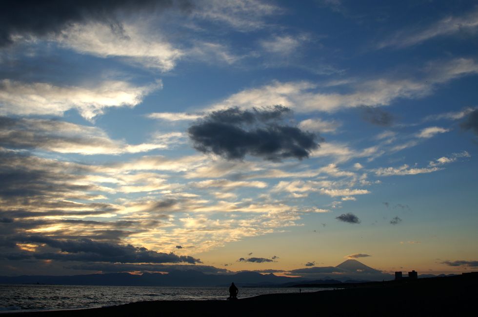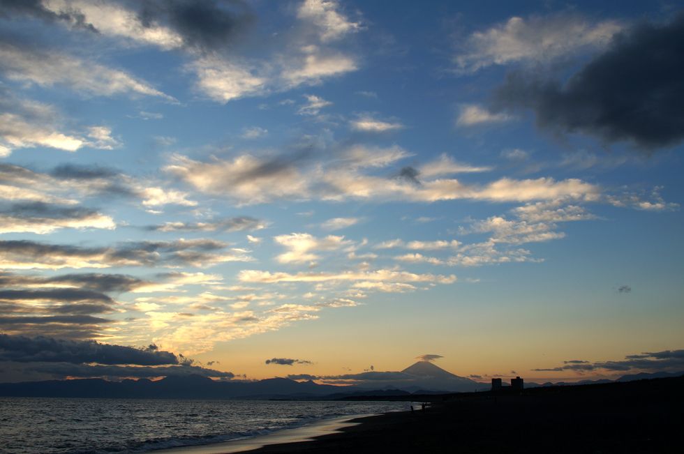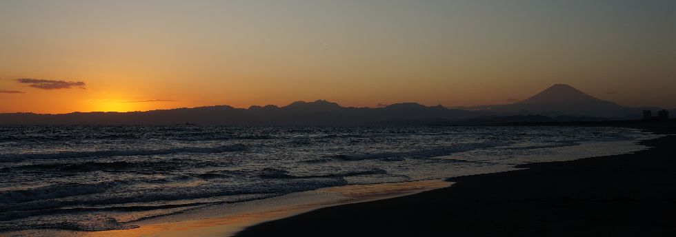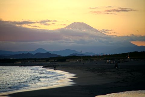 海岸からの富士山夕景