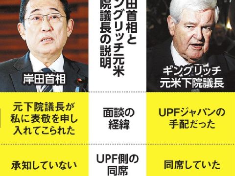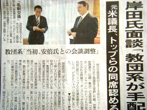旧統一教会メンバーとの面会、逃げ回る岸田同行者の詳細は知らないと苦しい言い逃れ、この写真では統一教会関係者ばかりなのに、言い訳が通用すると思っている? 左端の人物は協会元会長の息子でアベ自民党が選挙に利用していた「国際勝共連合」の会長という人物。 |