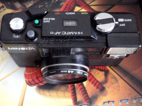 MINOLTA Hi-MATIC AF-D年末の片づけで出てきたカメラのうちの1台、一世を風靡したミノルタのデート付きAFカメラ、電池を入れてもシャッタはもう動作していない。 この時期の電子シャッタ式カメラは故障するともう回復不能。日付は機械式の写しこみなので、もう利用不可。 |