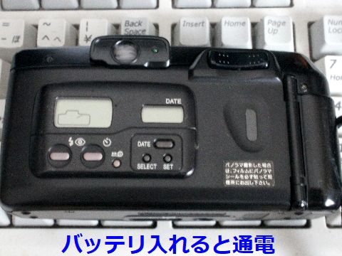 もう一台はキヤノンのAutoBoyルナ35こちらは電池を入れると日付も設定でき、撮影出来るかもという状態。フィルムを通してみないと解らないけど。 |