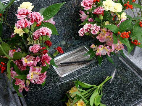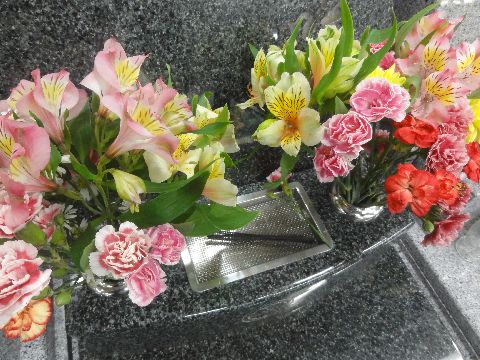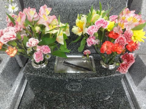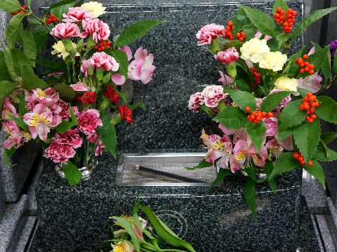 今年最後の墓参りに寒さもあって花は長持ち、さすがに1カ月前の花はダメになっているものがあったが。 余った花は義父母の墓へ持って行って入れてきた(水も交換、墓石も雑巾で拭いて)。 |
