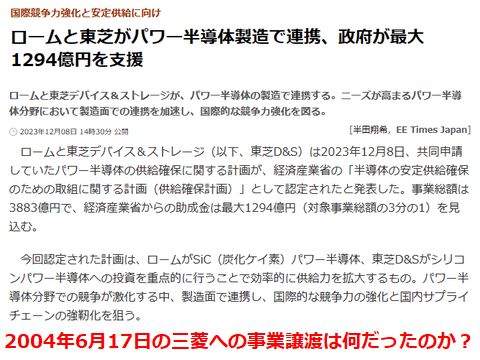 東芝とロームに政府の巨額援助金2004年のパワー半導体事業の三菱電機への譲渡は一体何だったのか、という大きな疑問。漏れ聞こえたのは 譲渡された三菱側がと東芝事業の技術の高さに驚いたという間抜けな話、ダメな事業を譲渡したはずが大きな思い違い だった、という茶番! |