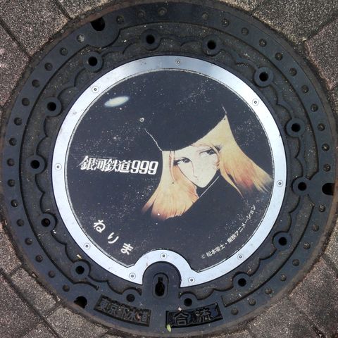 大泉学園:銀河鉄道999・メーテルマンホールカード収集の旅?まずは西武・大泉学園駅へ。駅前の西武バス案内所でカード1枚をゲット。 駅前バス停近辺に2種のマンホール、北へ少し歩いた妙延寺前の交差点に3つ目があった。 |