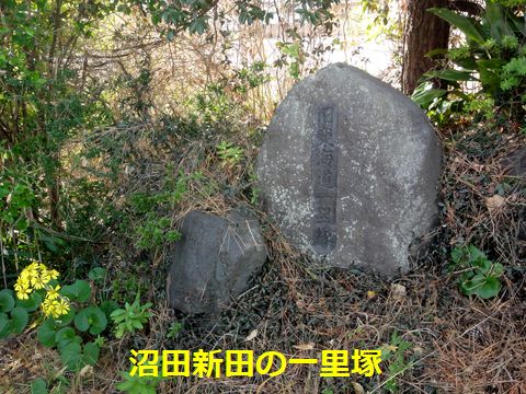 東海道で見つけられなかった一里塚を訪ねる案内板があるが近くにあるのは銅像、一里塚は少し離れた駐車場の車の陰に隠れている。 |
