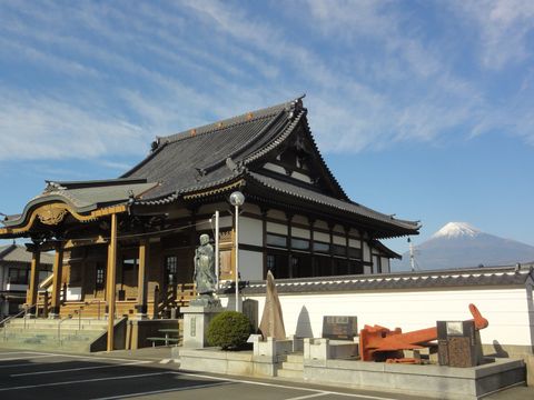 立圓寺と富士駅前からの富士山近くで難破したインドネシア船の遭難者の慰霊碑といかりがあるお寺。 |