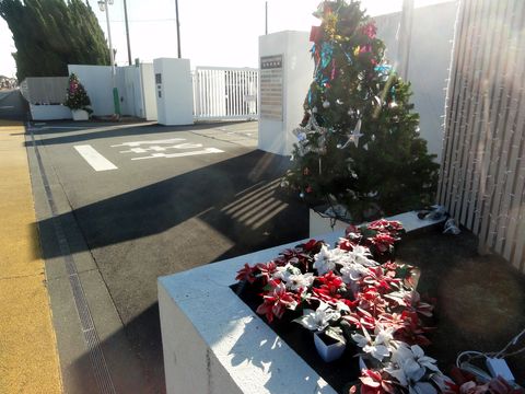 クリスマスが近づいてきたいつものサンタさんたちが玄関にお出まし。 |