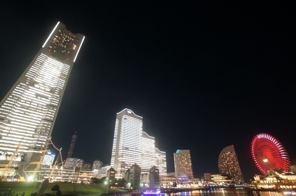 みなとみらい全館点灯何故か以前より「不点灯」の窓が多いような気がするが。参加するビルが減った? |