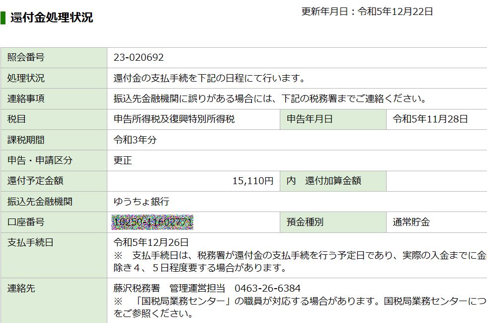 修正申告の振込がやっと年内に何と半年がかりの修正・還付手続き、何度も書類を出せとのやり取りが続いたが何とか年内に還付金が振り込まれそう。 デジタル化の時代なのでやり取りは紙の書類を送るという変な処理ばかりで、やたら時間が掛かった。 |