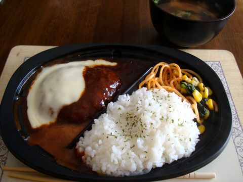 昼食はチーズグリルハンバーグ弁当