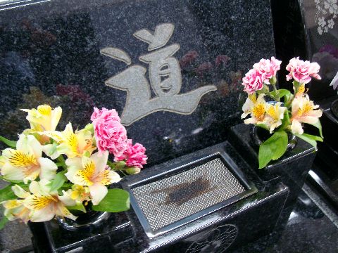 親戚(義父母)の墓も清掃墓石もずいぶん汚れているので、さっと清掃しておいた。 |