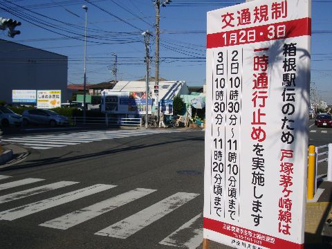 お正月の箱根駅伝の注意看板早いものであと10日ほどで箱根駅伝、歩道橋にも橋上からの観覧禁止の立て看板設置あり。 |
