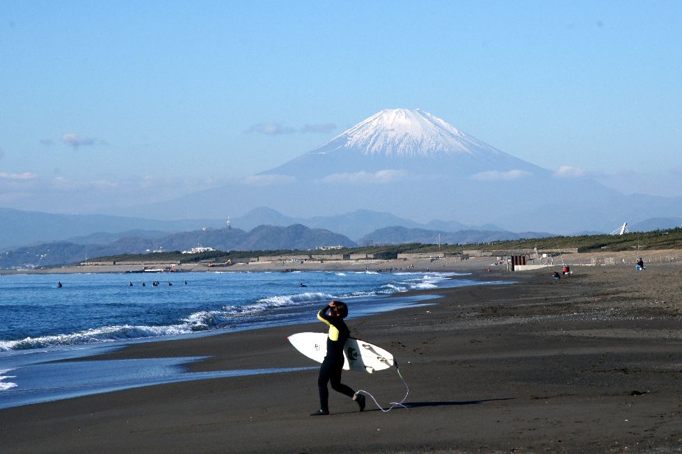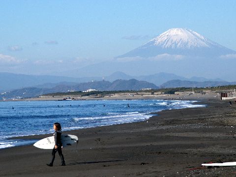 海岸からの富士山今日は朝からα900にミノルタのオールドレンズ 28-135mm/F2.8を付けて撮影、波はあまり無いがサーファーが多数。 ちびっこサーファー」2人も元気に波に向かっていった。 |