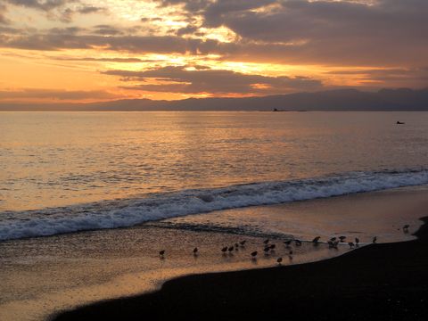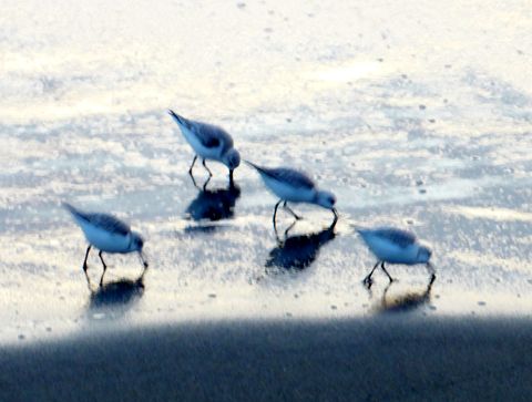 浜辺では浜千鳥が餌をついばむ