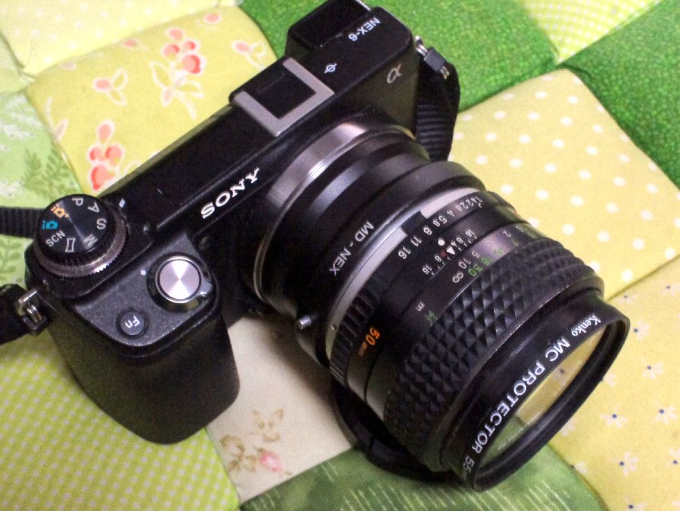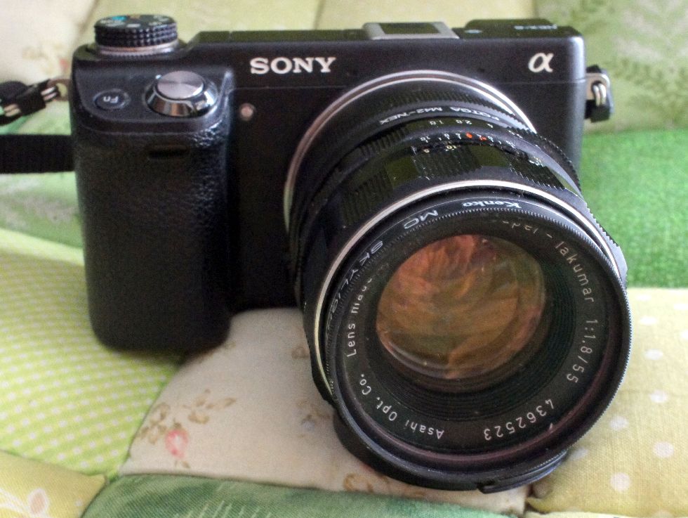 NEX-6にPENTAX Super Takumar 55mm/F1.8こちらはPENTAX SPに付いていた定番レンズ、ねじ込みマウントなので緩みが気に掛かる。 |