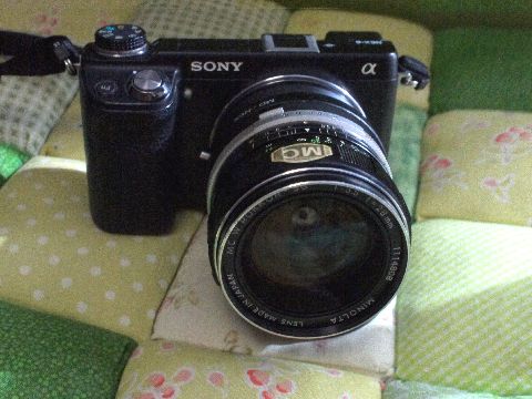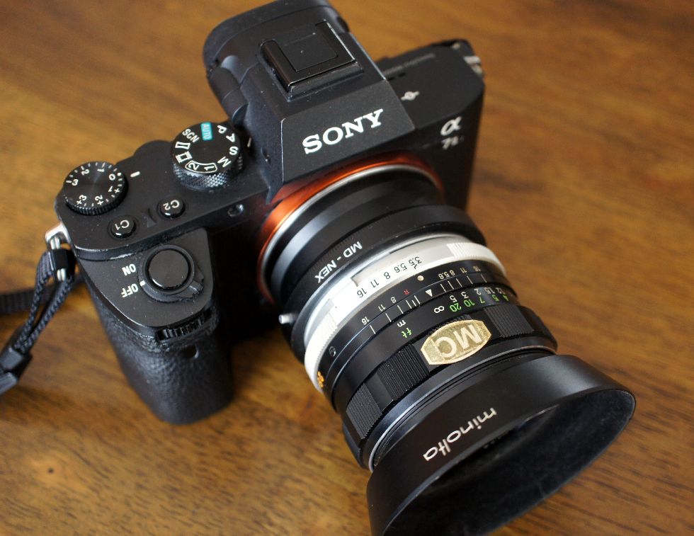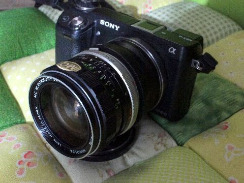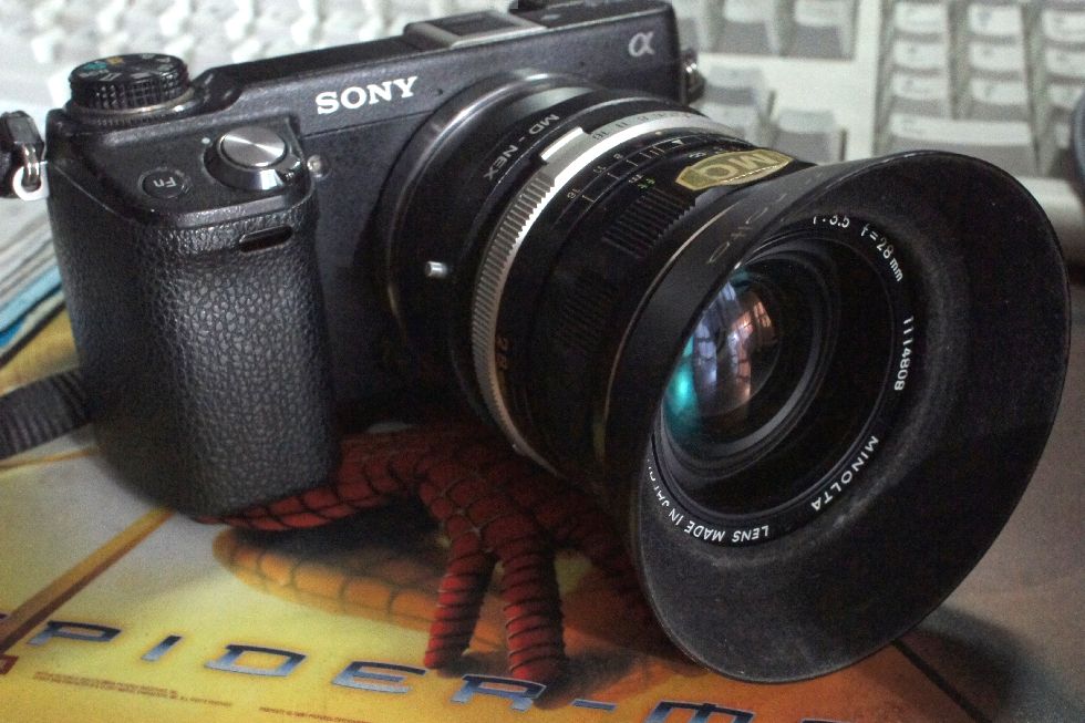 NEX-6にMINOLATA MC Rokkor 28mm/F3.5、純正フードを付けて